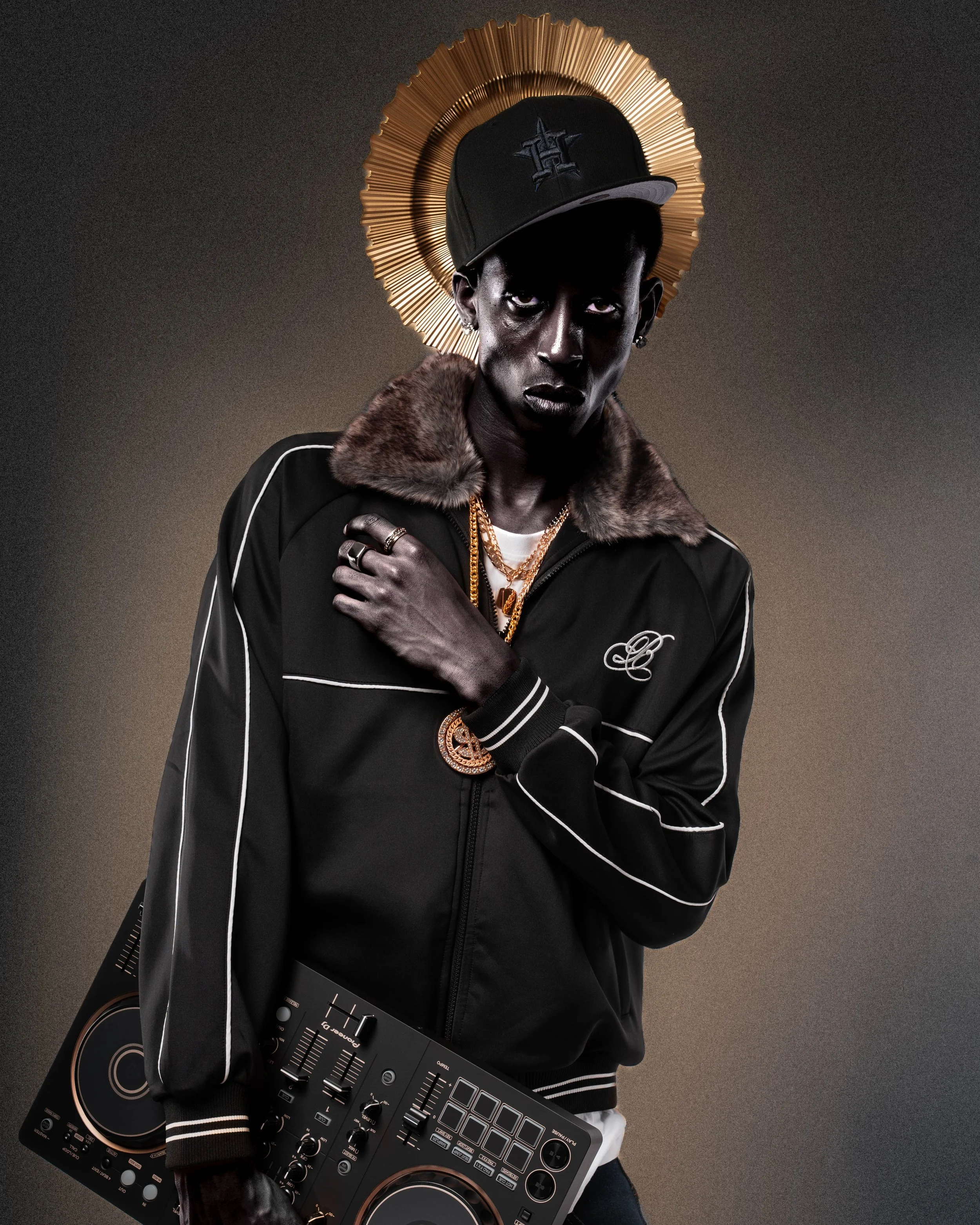 Southside Saint idolizes a defining era of Houston’s culture, honoring the artists and legacy that shaped the city. Rooted in late 90s and early 2000s hip-hop, the concept centers the talent within a cathedral-like speaker structure, haloed as a symbol of cultural reverence, with subtle grayscale tones and era-driven styling to evoke timelessness, faith, and legacy.